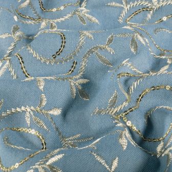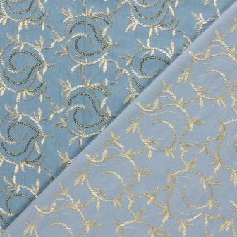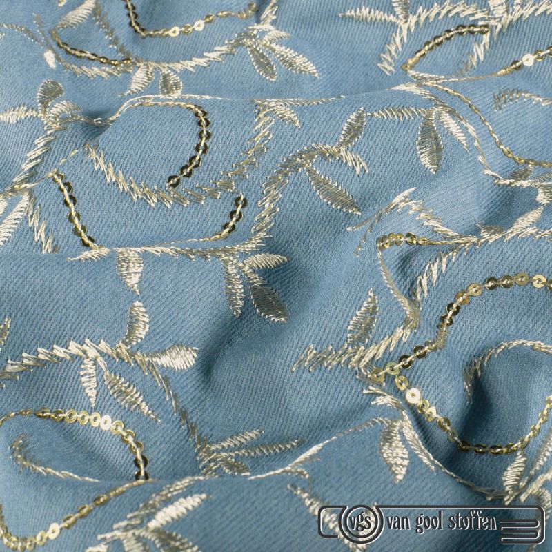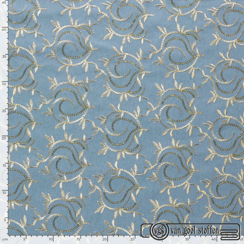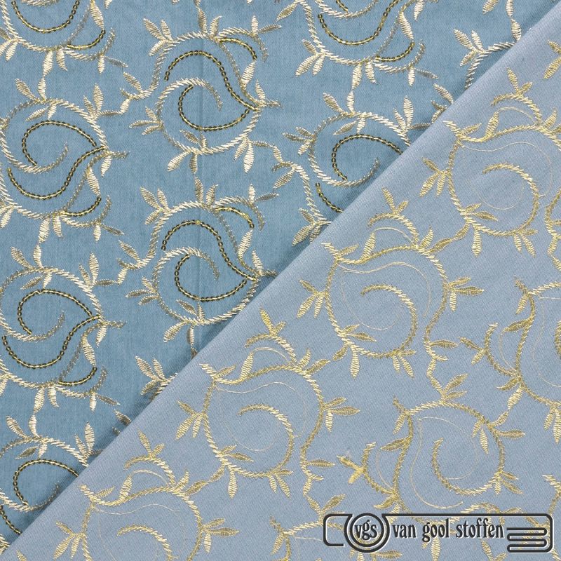 denim stof met geborduurde bladeren kleur 003 my image collectie