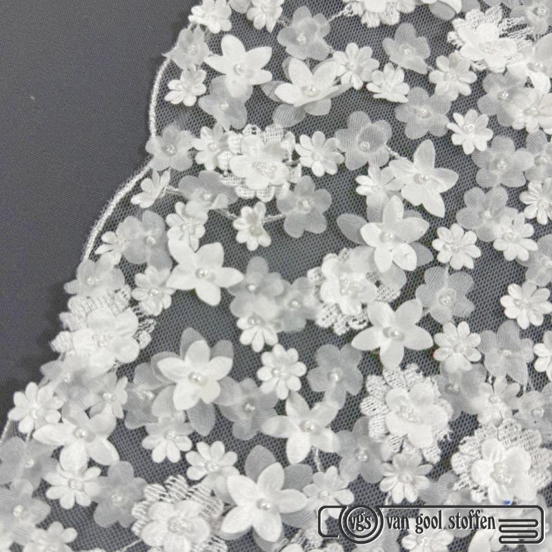 Dit delicate kant is perfect voor tops, bruidsjurken, communiejurkjes of als schitterend detail op mouwen, lijfjes en randen. Doordat de randen al afgewerkt zijn, bespaart u veel werk bij verwerking en krijgt uw creatie meteen die professionele, luxueuze finish.