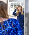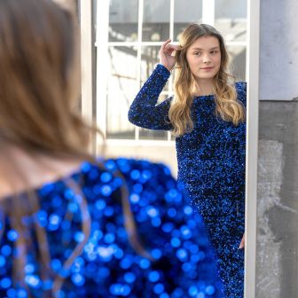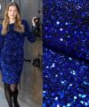 100% poliéster ligeiramente elástico. O tecido tem 140 cm de largura, dos quais as lantejoulas têm 125 cm de largura. Este tecido é usado no livro de padrões Stitched by you.