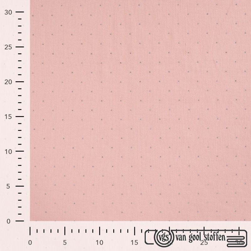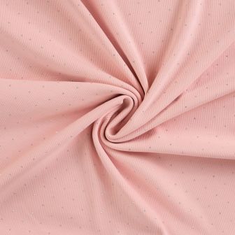 Deze Rib Jersey Studs in de kleur Dusty Pink is een zachte, rekbare en comfortabele stof, perfect voor baby- en kinderkleding. Dankzij de fijne ribstructuur en subtiele studs heeft de stof een speelse, maar toch rustige uitstraling.