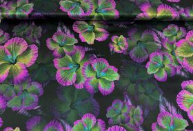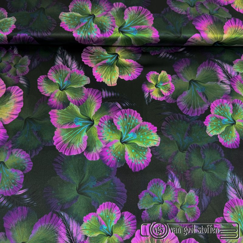 Exclusieve stretch zijde Italiaans design bloemen print groen cerise