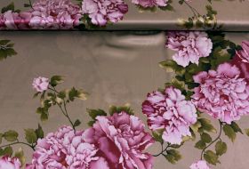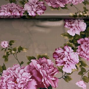 Exclusieve stretch zijde Italiaans design bloemen print taupe cerise