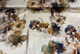 Exclusieve stretch zijde Italiaans design bloemen print camel creme