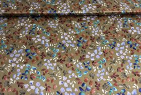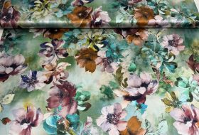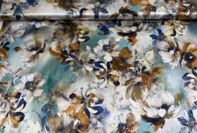 Exclusieve stretch zijde Italiaans design bloemen print camel donker mint