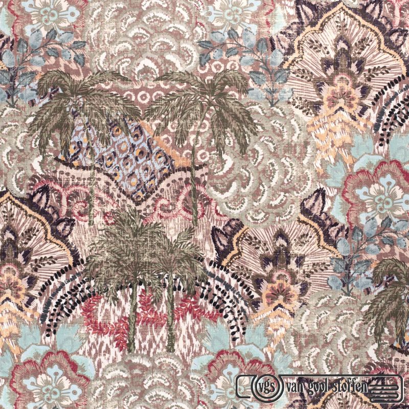 Velours / fluweel micro polyester velvet digitaalprint bohemian kaki groen
