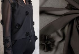 Voile met 3D bloemen zwart