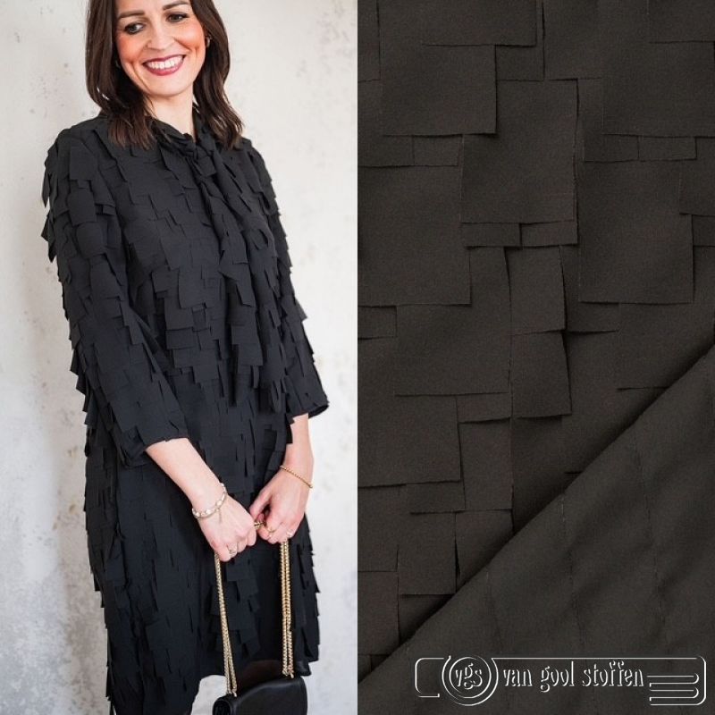 Voile met franje zwart