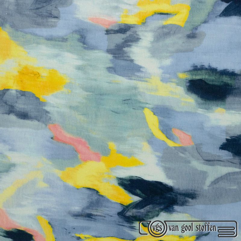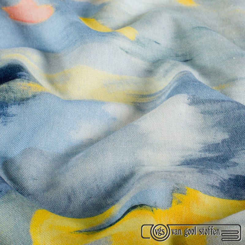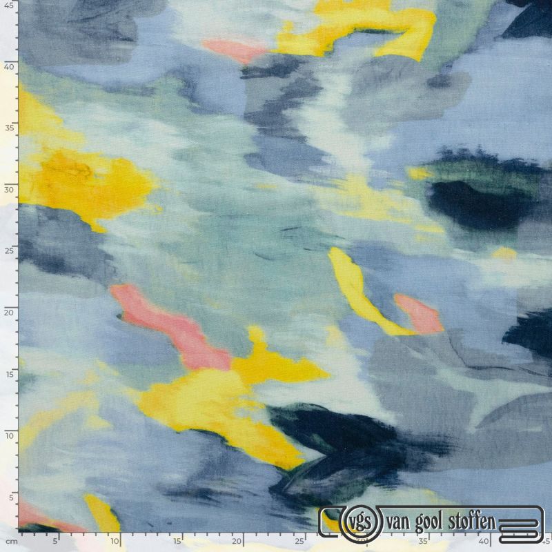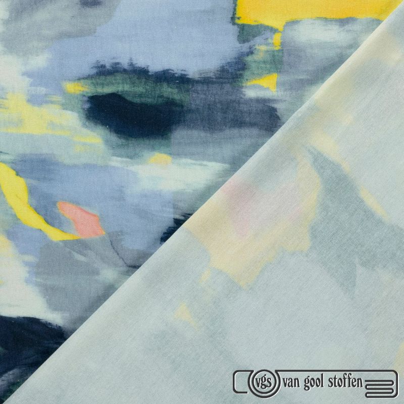 De stof bestaat uit 50% katoen en 50% polyester, wat zorgt voor een prettige combinatie van comfort, ademend vermogen en duurzaamheid. Met een gewicht van 220 gram per m² en een breedte van 135 cm is deze stof zeer geschikt voor zowel kleding als accessoires.