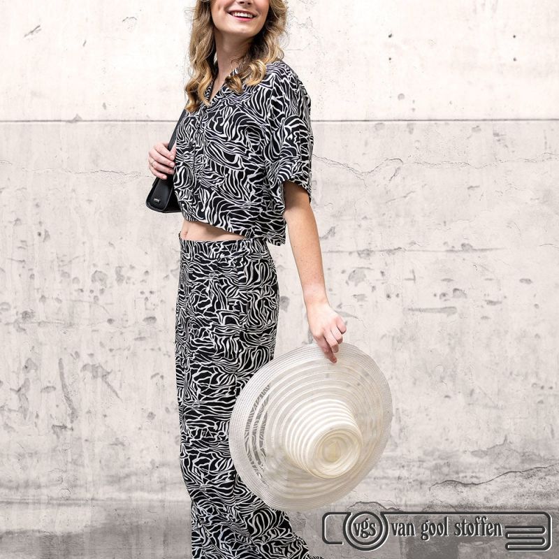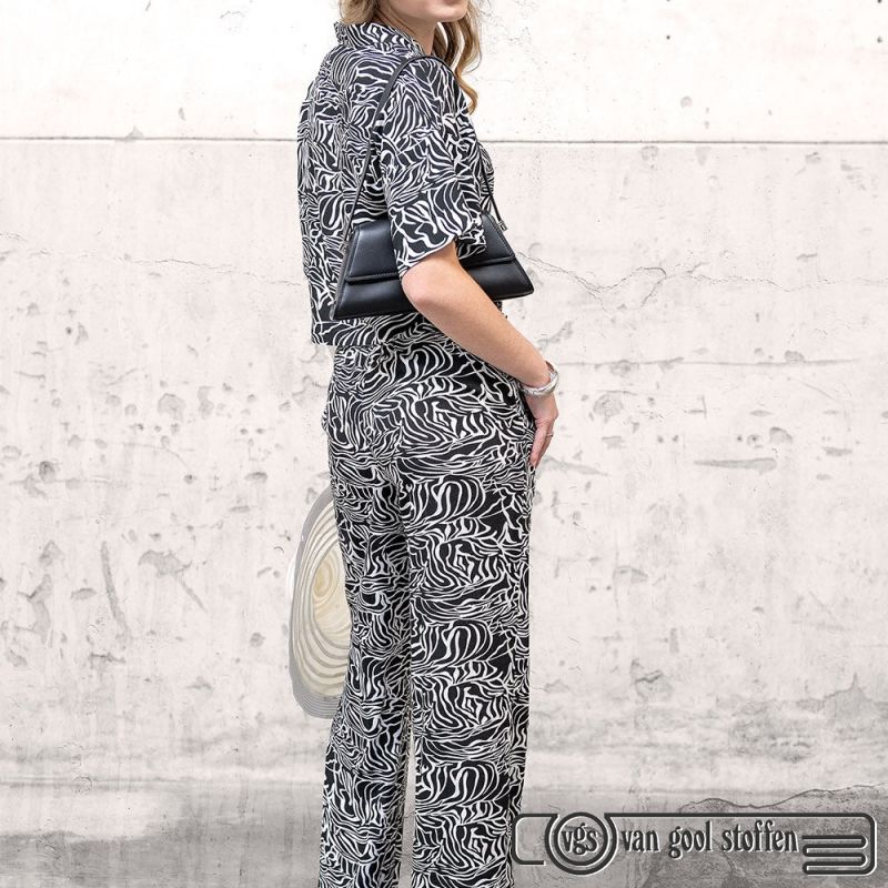 Linnen viscose abstract zwart white off print my image