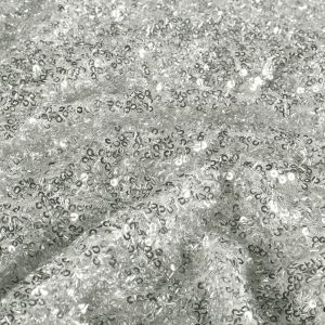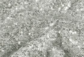 Mesh stof met pailletten en kraaltjes – zilver