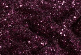 Mesh stof met pailletten en kraaltjes – paars rood / aubergine