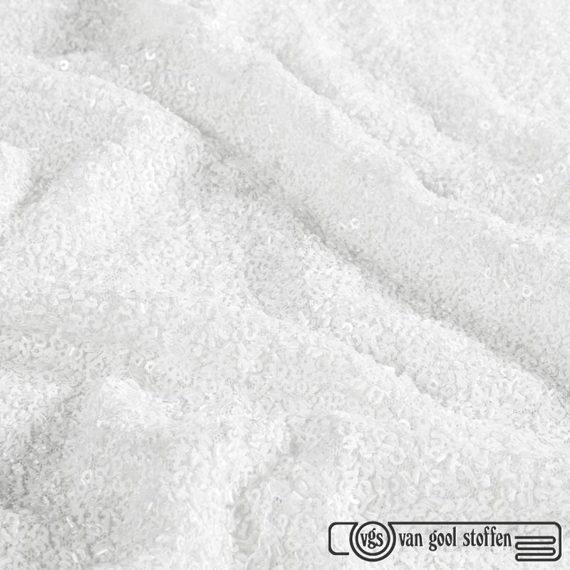 Mesh stof met pailletten en kraaltjes – wit / white off