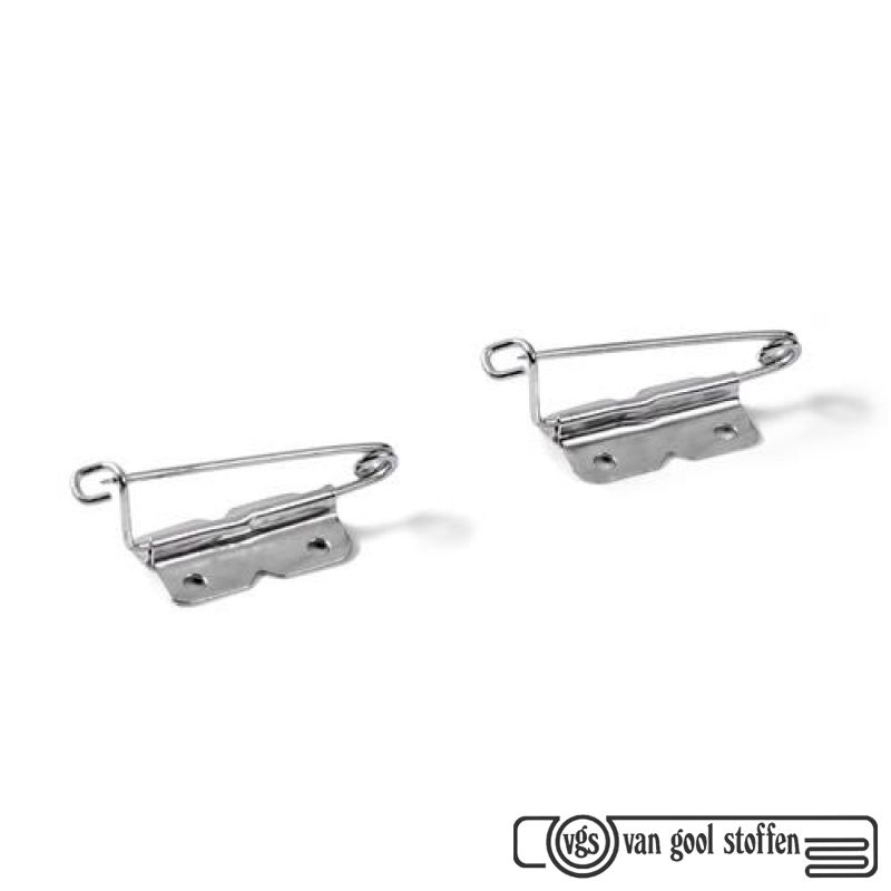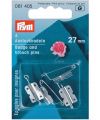 Prym Corsagespeld + plaatje zijn perfect voor het vastmaken van allerlei accessoires zoals badges, broches, naamplaatjes of medaillers. Ze zijn gemaakt van roestvrij ijzer. Beschikbaar met of zonder (4-gaats, geperforeerd) metalen plaatje. 4 stuks
