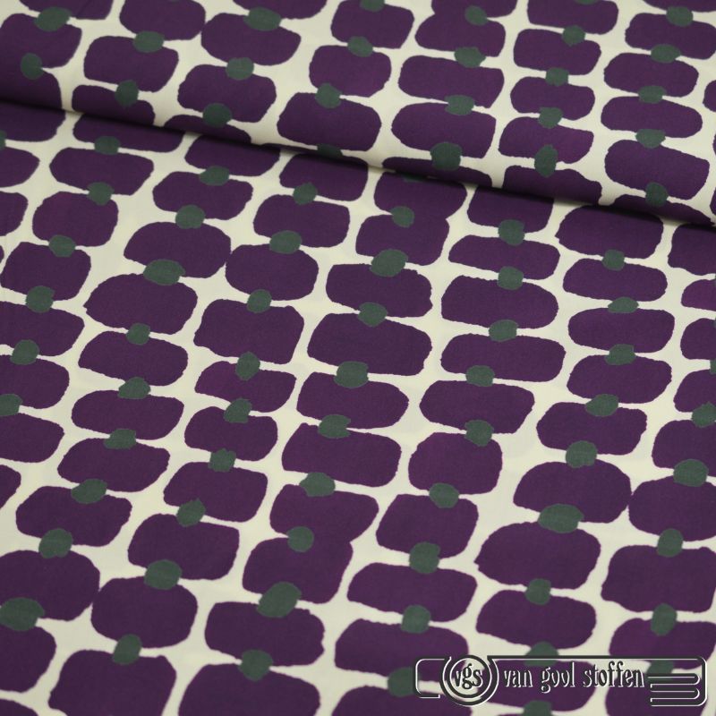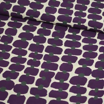 Ontdek de exclusieve À la Ville collectie: Europese kwaliteit stoffen die luxe, stijl en comfort combineren. Deze 100% viscose stof heeft een prachtige abstracte blokkenprint in aubergine-paars tinten op een zachte crème ondergrond. Door de soepelvallende en ademende eigenschappen van viscose is deze stof perfect voor modieuze kledingstukken met een elegante uitstraling.