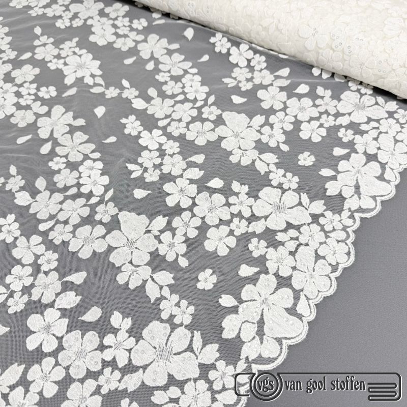 Kant met bloementjes bruidskant ivory met glitter pailletten