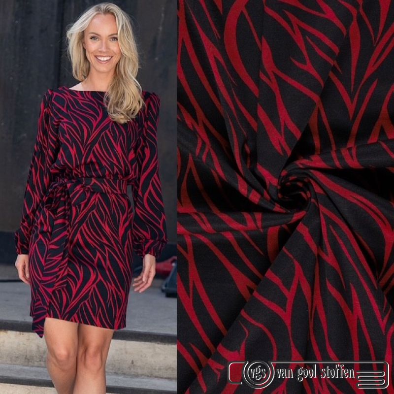 Exclusieve zijde stretch italiaanse designerstof klap rozen rood zwart