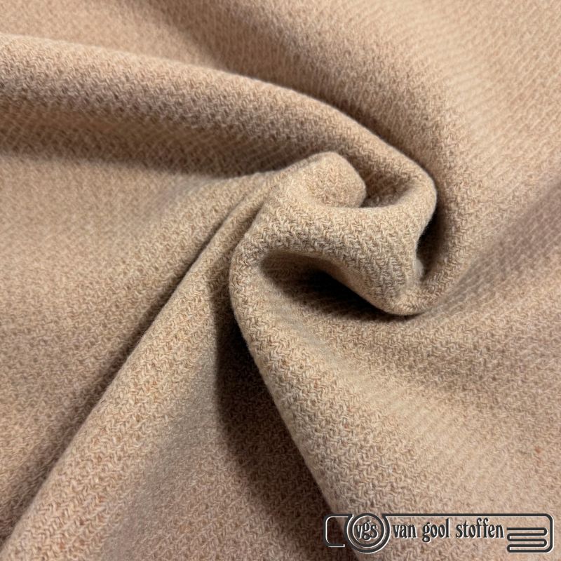 Grof geweven mantelpak stof / boucle ivory met camel en goud lurex