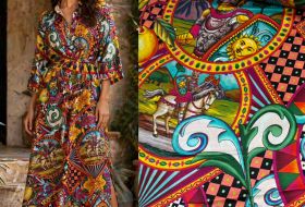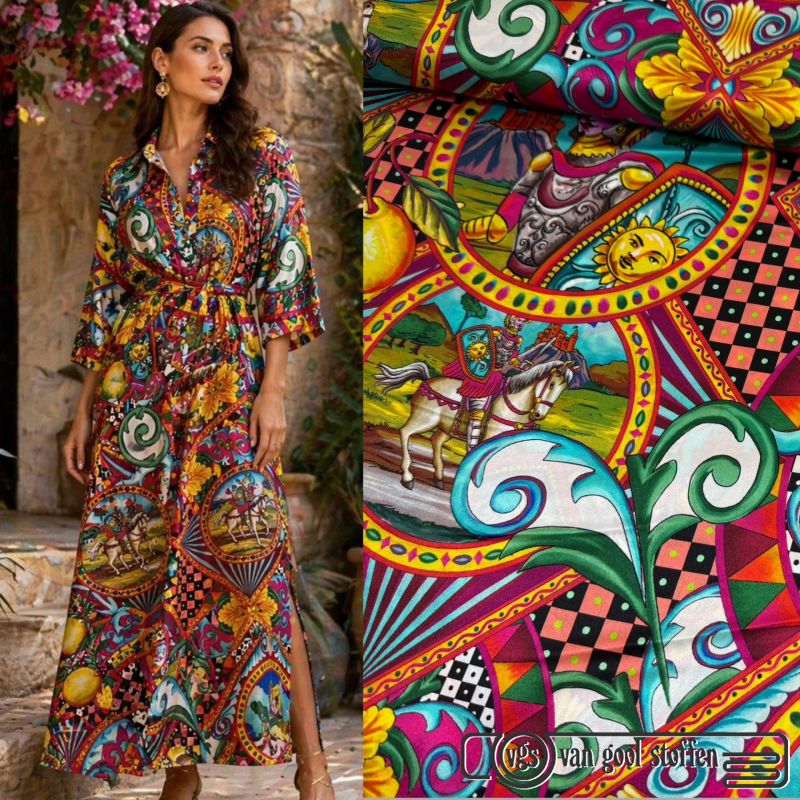 Exclusieve stretch zijde Italiaans designer print dolce vita