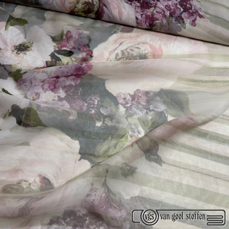 Zijde chiffon bloemen & DG Italiaanse designer stof (deadstock)