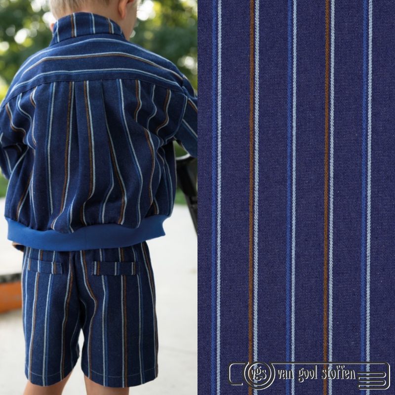Tricot badstof streep jeans blauw brique Poppy meets pomme