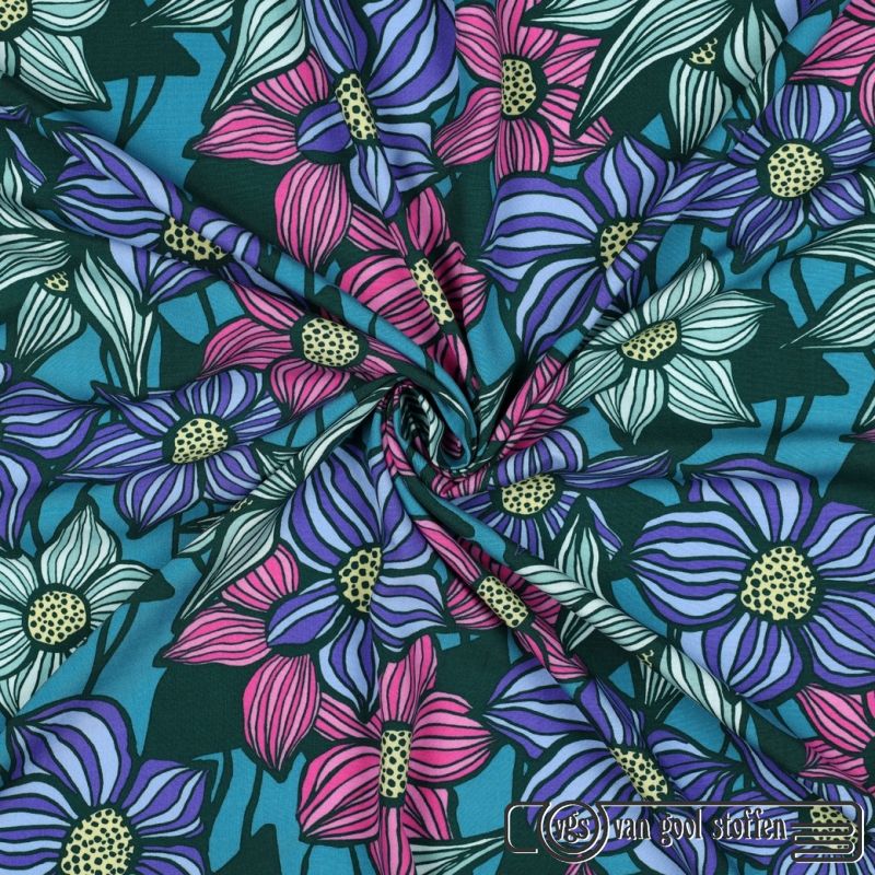 Viscose ecovero lenzing digital flowers petrol Poppy meets Pomme