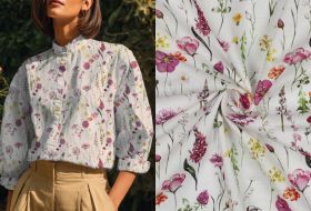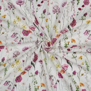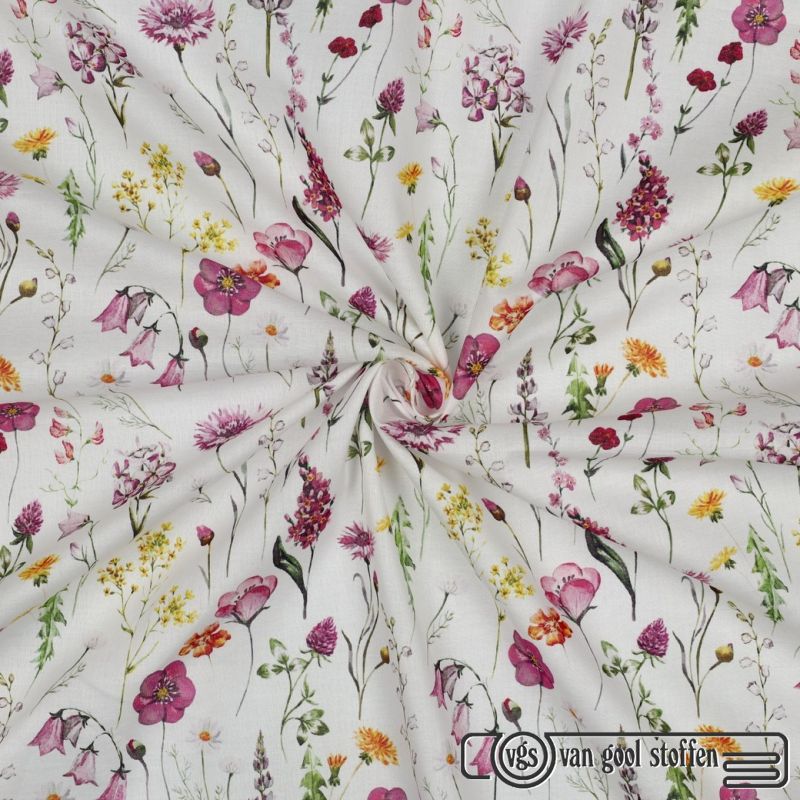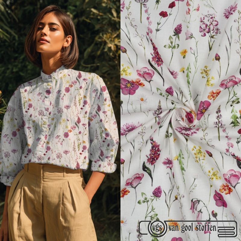 Voile met linnen structuur bloemen print cerise A La Ville / Knipmode