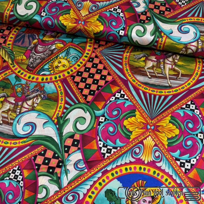 Ontdek pure luxe met deze exclusieve Italiaanse zijde — een verfijnde kwaliteit van 94% zijde en 6% lycra met een prachtige digitale print. Met een gewicht van slechts 100 g/m² en een breedte van 136 cm valt deze zijde soepel en elegant, perfect voor de meest stijlvolle creaties.