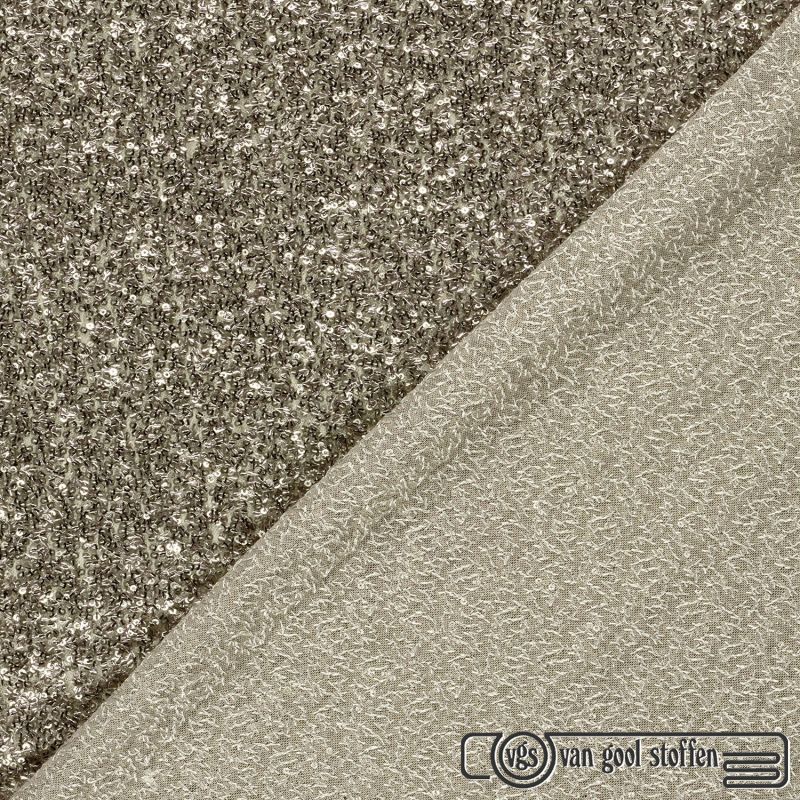 Deze luxe mesh stof in een beige goud kleur is rijkelijk versierd met pailletten en fijne kraaltjes. De transparante mesh basis geeft de stof een elegante en verfijnde uitstraling, terwijl de subtiele stretch zorgt voor extra draagcomfort. Perfect voor ontwerpen die mogen opvallen.