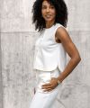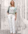 Deze stof wordt gebruikt in het patronenblad My Image en is daarin verwerkt als broek en top, wat de veelzijdigheid en kwaliteit van deze stof benadrukt.