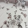 Maak een statement met dit uitzonderlijke haute couture kant. Op een zachte stretch tule-basis zijn bloemen geplaatst en subtiel afgewerkt met pailletten accenten — een combinatie die direct luxe, diepte en verfijning toevoegt aan elk ontwerp.